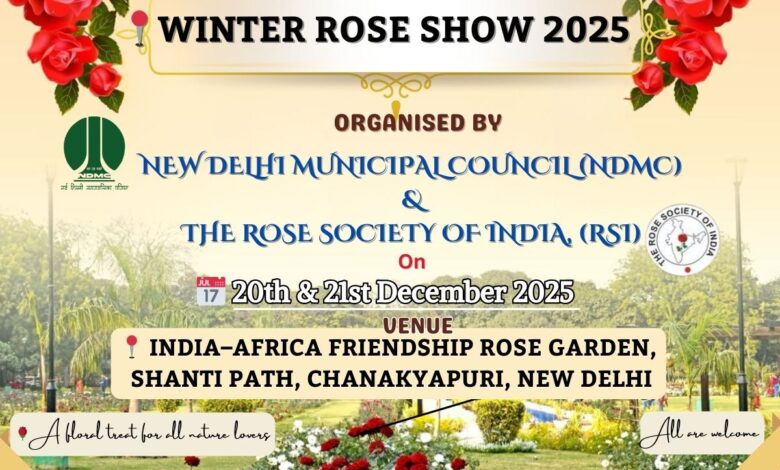 The New Delhi Municipal Council (NDMC), in association with the Rose Society of India, will organize the annual Winter Rose Show on 20th and 21st December, 2025 at the India–Africa Friendship Rose Garden, Chanakyapuri, New Delhi.